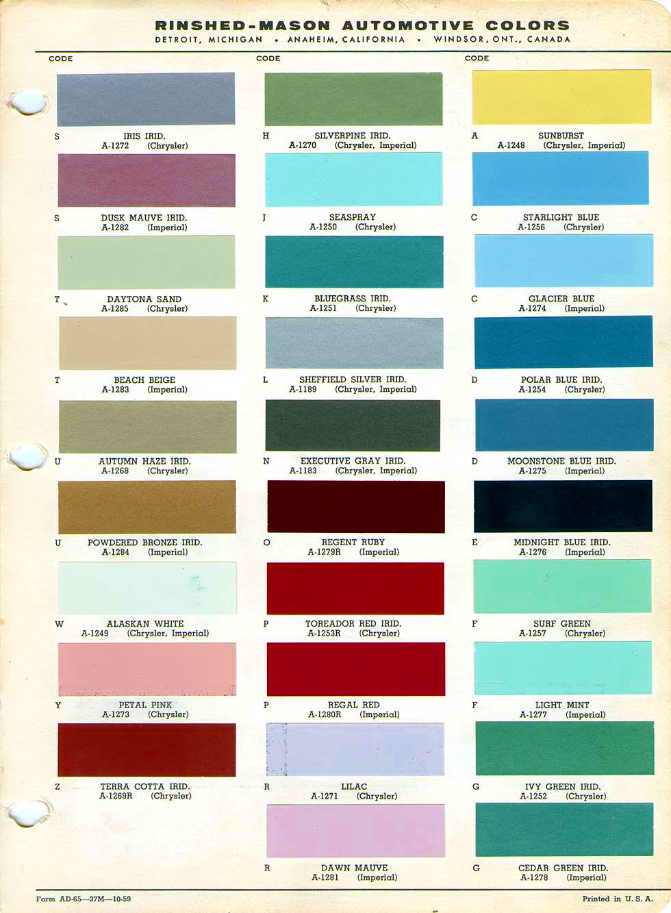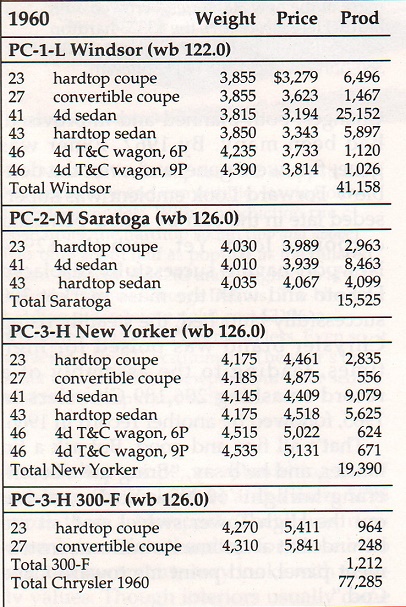 1960 Chrysler Specs, Styling, and Equipment, & Accessory Groups